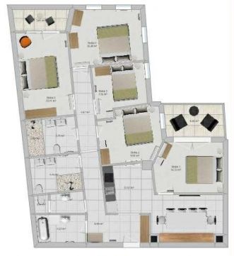 5 tágas, külön nyíló hálószoba