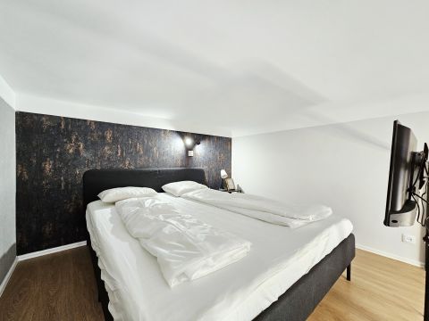 - hűtő, szekrények, TV, ágy matraccal