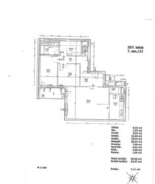 - nappali, 2 szoba, előtér, közlekedő, wc, fürdőszoba, konyha, kamra, gardrób