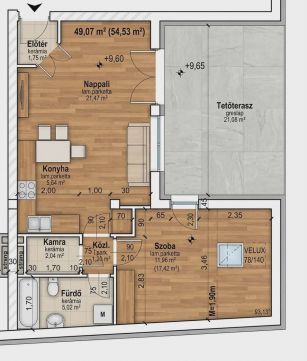 Kínálatunkban eladó egy 14 lakásos exkluzív társasház harmadik emeleti lakás található, amely a belváros szívében, tégla építésű, magas műszaki tartalommal készült. A harmadik emeleti nettó 49 m2-es (bruttó 54,53 m2) lakás tágas nappali + 1 hálószobás elrendezéssel, külön fürdővel WC-vel, valamint egy lenyűgöző, 20 m²-es Penthouse jellegű lodzsával rendelkezik.