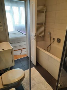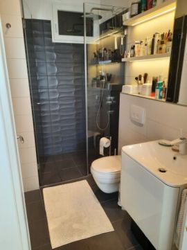 Vendég/második fürdő: Zuhanyzós, WC-s (az előszobából nyílik, a második háló mellett).