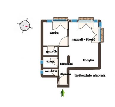 A lakás tárolásra remekül használható előszobája és közlekedője vezet a nappaliba.