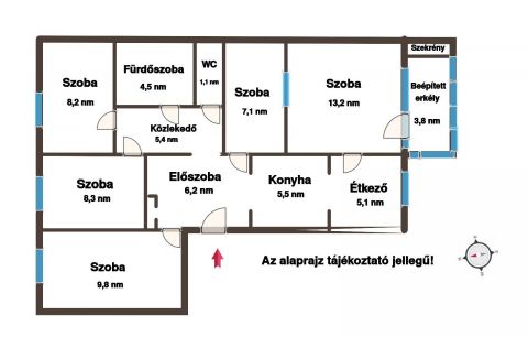 Az ingatlan jelenleg gipszkarton falakkal 1+4 félszobássá lett átalakítva, ami igény esetén eredeti állapotára könnyen visszaalakítható.