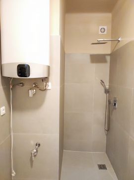 A meleg víz ellátást egy Ariston bojler biztosítja, mely nappali és éjszakai áramról is működik