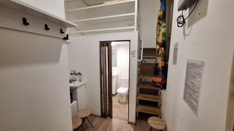 - Loft in every room: lower level height 2.1 m, upper level 1.7 m, fits a 1.6 m bed.