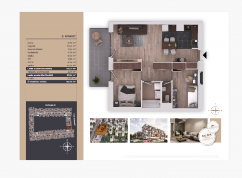 A lakás a társasház 2. emeletén helyezkedik el, praktikus, jól használható alaprajzzal: nappali-konyha + 2 külön szoba, valamint erkély tartozik hozzá. A belső terek kialakítása mai élethelyzetekhez igazodik, így tökéletes választás lehet azoknak, akik élhető, átgondolt otthont keresnek korszerű műszaki háttérrel.