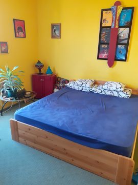 Pécsett-Uránvárosban a Páfrány utcában kiadó 2 szobás (46 nm), felújított panellakás 8. emeleten. A lakás jól szigetelt, új nyílászárókkal és minden szobában állítható, korszerű központi fűtéssel felszerelt. A WC és a fürdőszoba külön van, teljes bútorzattal és felszereléssel (porszívó, mikro, mosógép, álló ventilátor, TV, vasaló, kenyérpirító, étkészletek, ágyneműk stb) kiadó. A hálószobában óriási franciaágy van kiváló matraccal. Bár erkély nincs, a nagy francia ablakokból gyönyörű kilátás nyílik a Mecsekre és a belvárosra. Télen, fűtési szezonban is alacsony a rezsi (tavaly télen a havi fűtés átlag 14 000 Ft volt). A lépcsőház világítását és a liftet a tetőn lévő napelemek működtetik, a lift korszerűen felújított.