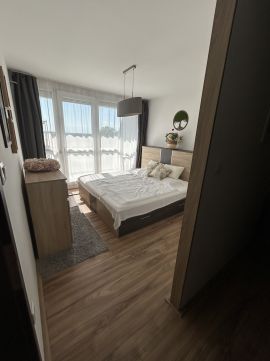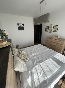 A lakás csendes, zöldövezeti környezetben helyezkedik el. A közelben bolt, benzinkút, buszmegálló, iskola, óvoda, stb.. gyalogosan pár perc alatt elérhető. A belváros (pl. Árkád) autóval 5-10, busszal kb. 10-15 perc alatt elérhető.