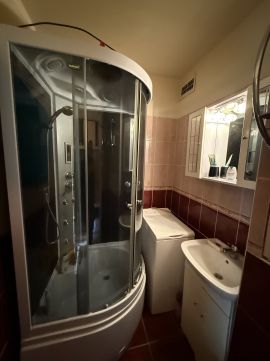 - A fürdőszoba felújított, új burkolatokkal és beépített zuhanykabinnal