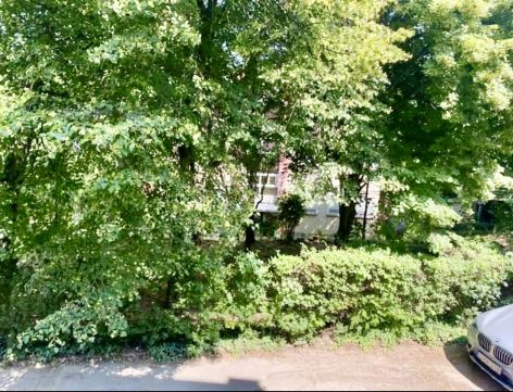A társasház két másik ugyanolyan házzal osztozik egy hatalmas, ősfás telken, közvetlenül az erdő mellett. A gyerekeknek saját, zárt játszótér áll rendelkezésére. Parkolni a ház előtt is lehetséges, szokásjog alapján tartozik egy hely a lakáshoz, de az utcán is mindig van szabad hely.