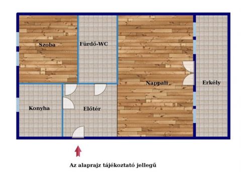 A lakás 66 m2, minden helyiség kényelmes, tágas.