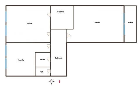 A lakás praktikus elrendezésű: két világos szoba, külön konyha, fürdőszoba, WC, gardrób és beépített szekrény biztosít kényelmes életteret. A 4 m²-es erkély tökéletes helyszín a reggeli kávéhoz vagy egy esti kikapcsolódáshoz.