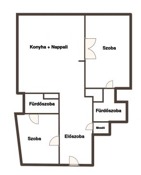 Az ingatlan egy karbantartott, liftes, polgári társasház 2. emeletén található (a félemelet miatt a gyakorlatban a 3. szintnek felel meg). A lakás elrendezése amerikai konyhás nappaliból, két külön nyíló hálószobából, két fürdőszobából és külön vendég-toalettből áll. A nappali és a fő hálószoba utcai tájolású, a második hálószoba csendes belső udvarra néz, így az ingatlan egyszerre biztosít reprezentatív életteret és nyugodt privát zónát.