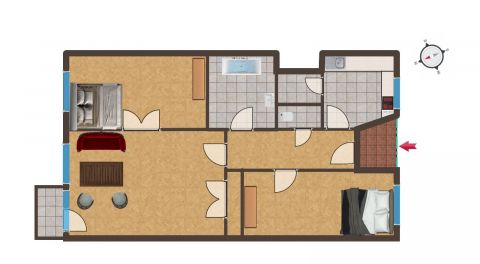 A nappali és a kisebbik szoba a Bocskai útra néz, a nagyobbik szoba pedig csendes, belső udvarra.