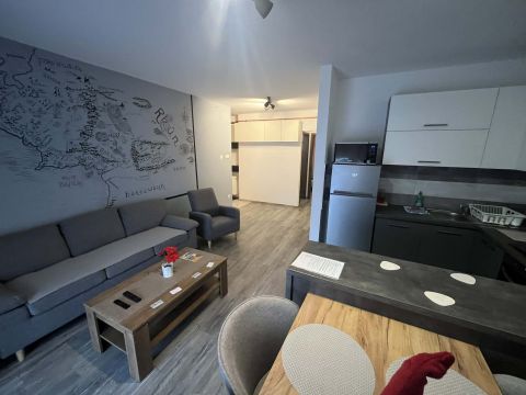A külön bejáratú, légkondicionált apartmanban  nappali, két hálószoba, valamint kádas fürdőszoba található . A jól felszerelt konyhában főzőlap, hűtőszekrény, kávéfőző, elektromos vízforraló, konyhai eszközök és mikrohullámú sütő található.  Az otthon teljes bútorzatával együtt kiadó.