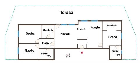 - 2 fürdőszoba Wc-vel együtt, egyik fürdőkádas, másik zuhanykabinos