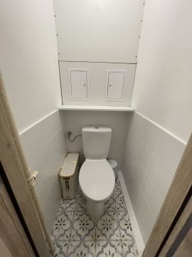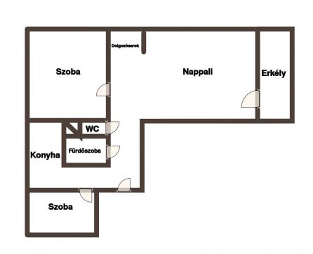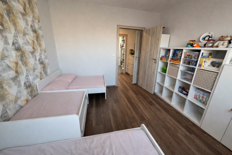 A lakás elosztása praktikus: 3 külön nyíló szoba mellett egy kialakított dolgozósarok is helyet kapott.