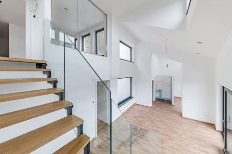 Üvegkorlátos, exkluzív lépcső és átrium