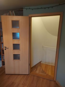 a felső szinten új nyílászárók és padlóburkolat került beépítésre, hangszigeteléssel