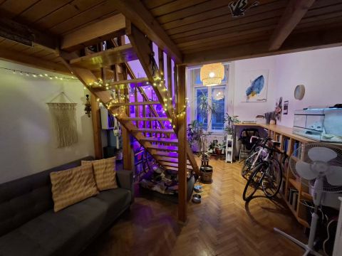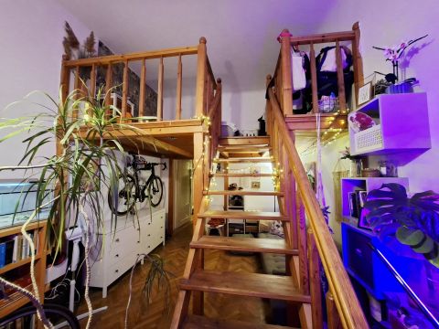 Eladó a 6. ker. Csengery utcában - az Andrássy úttól másfél sarokra - egy első emeleti, utcai nézetű, hangulatosan berendezett, 42 m2-es, dupla galériás lakás!