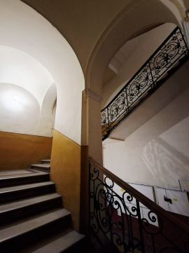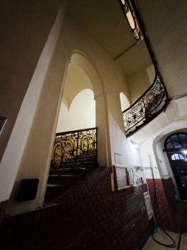 A ház egy múlt század elején épült polgári épület, amely jól karban van tartva, udvara szép növényekkel beültetett. A ház elegáns lépcsőházzal rendelkezik, lift nincs - de az első emeleti elhelyezkedés miatt ez a legtöbbeknek nem probléma.