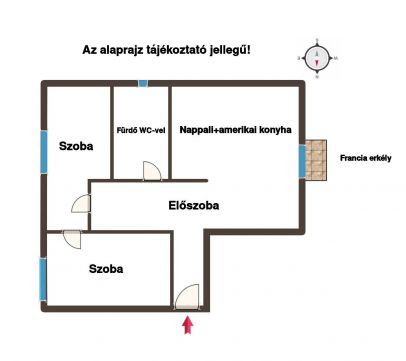 A lakás elrendezése praktikus: egy világos nappali amerikai konyhával, valamint két külön nyíló szoba áll rendelkezésre, így ideális lehet fiatal pároknak, kisebb családoknak vagy akár befektetési célra is.