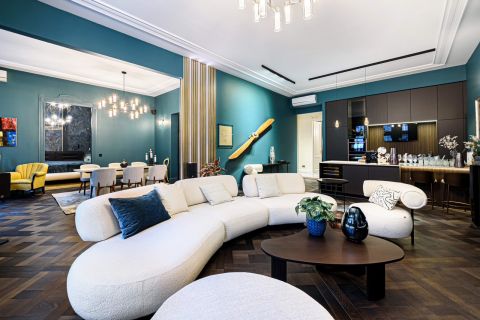 A Szabadság térnél kiadó egy luxus színvonalon felújított, modern, nagypolgári, 152 nm-es, nappali 2 hálós, nagy étkezős, duplaerkélyes, Loxon okosotthon egy impozáns, liftes ház harmadik emeletén utcai nézettel 4300 euro+rezsiért/hó.