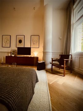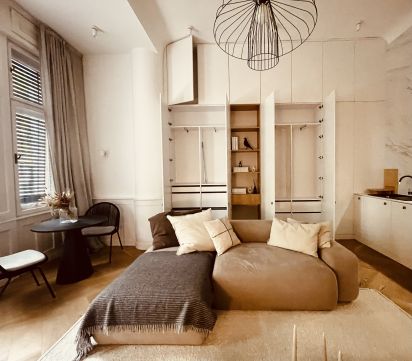 Hosszú távra kiadó VI. kerület Benczúr utcában, kiváló állapotú villaépületben a Városligettől séta távolságra egy 48 nm-es 1,5 szobás teljeskörűen felújított villalakás, külső bejárattal melyhez egy gyönyörű kerten át vezet az út.
