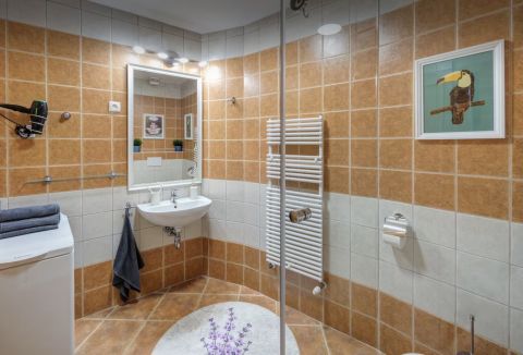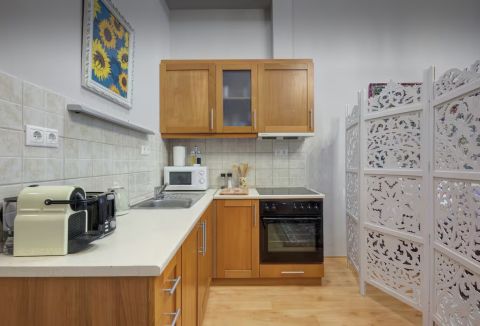 The apartment features an impressive 4-meter ceiling height, creating a spacious and elegant classical atmosphere. The fully equipped kitchen and bathroom with shower and WC make it ideal both for personal use and short-term rental.