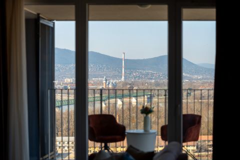 Az ingatlan belső kialakítását a tágas terek és a prémium anyaghasználat jellemzi. A hatalmas üvegfelületeknek köszönhetően a lakás egész nap fényárban úszik, a nagyméretű terasz pedig tökéletes helyszínt biztosít a kikapcsolódáshoz Budapest látképe felett.