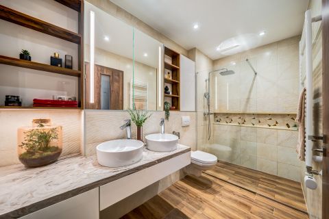 - Komfort: 2 db modern, elegáns, tágas fürdőszoba.