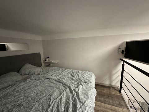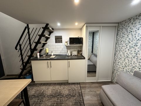 A fűtés elektromos. A háló a galérián található, alatta pedig egy kis konyha került kialakításra.