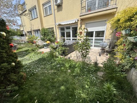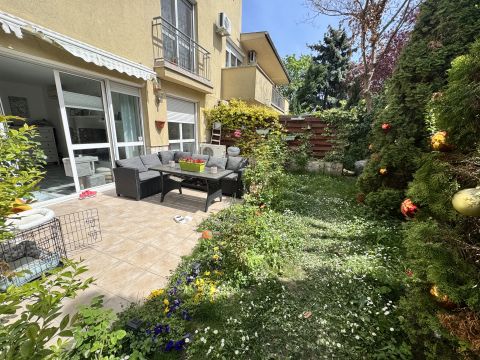 A lakáshoz tartozik egy 19 m²-es terasz és egy körülbelül 100 m²-es, közvetlen kertkapcsolattal rendelkező, intim használatú kertrész.