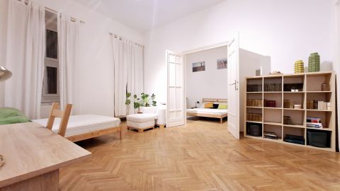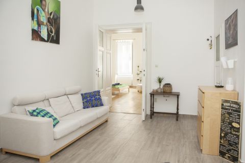 Eladó Budapest VIII. kerületében, a Palotanegyedben, a Vas utcában, rendezett társasház 1. emeletén egy 70 m²-es, amerikai konyhás nappali + étkezővel és két külön nyíló szobával rendelkező, teljeskörűen felújított, összkomfortos, polgári lakás, befektetési és saját célra egyaránt alkalmas kialakítással.