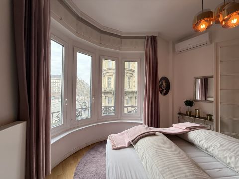 In one of Budapests most iconic areas, on Bajcsy-Zsilinszky Road, approximately 50 meters from the Basilica and 100 meters from Deák Square, a fully renovated, second-floor, 114 sqm apartment with a balcony is available for rent.