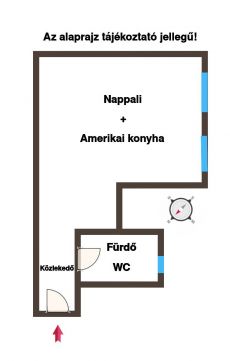 A lakás Dél-Nyugati tájolásának és nagy ablakainak köszönhetően világos, barátságos élettérrel rendelkezik. A nappali amerikai konyhás kialakítása praktikus és tágas, a fürdő és a WC egy helyiségben található.