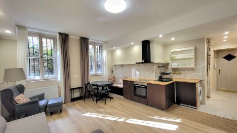 Kiadó egy 35 m²-es, teljeskörűen felújított, elegáns lakás a Diplomatanegyed egyik legszebb utcájában. Az ingatlan 2025-ben esett át prémium minőségű felújításon, ahol a modern stílus és az időtálló elegancia került előtérbe.