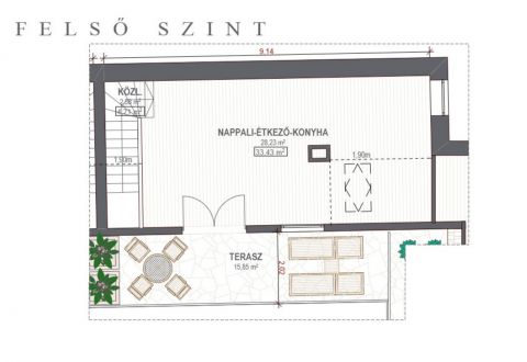 17 m²-es privát terasz a felső szinten városi ritkaság, ami önmagában értéknövelő tényező.
