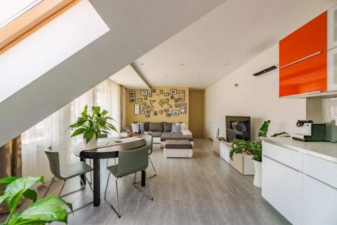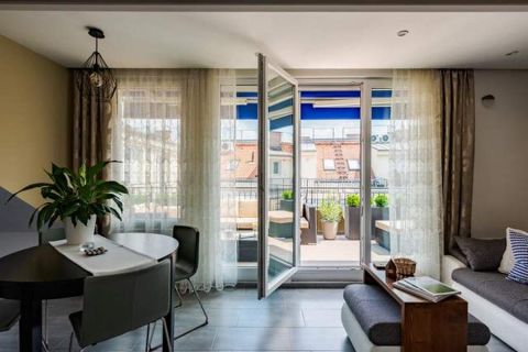 A Nyugati környékén új építésű vagy ráépítéses, teraszos, belső kétszintes lakás ilyen paraméterekkel ritkán kerül piacra különösen úgy, hogy már stabil bérlői háttérrel rendelkezik.