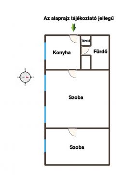 A lakás praktikus elosztású: egy tágasabb nappali, valamint egy kisebb külön nyíló szoba áll rendelkezésre, így ideális lehet akár fiatal pároknak, egyedülállóknak, vagy kiadásra is. Földszinti elhelyezkedésének köszönhetően könnyen megközelíthető.