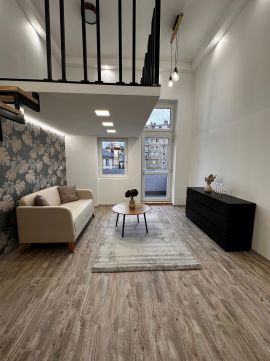 A lakás alapterülete 35 nm. Található benne egy 5 nm-es állógaléria, ahol egy hálórész került kialakításra, + 6 nm erkély, ahonnan a kilátás a Haller parkra néz. Közös költség: 18.800.- Ft.