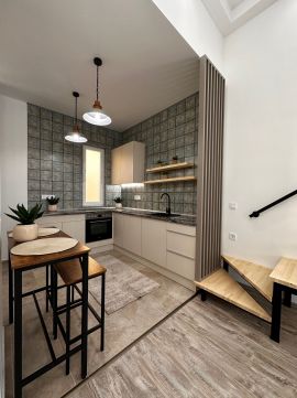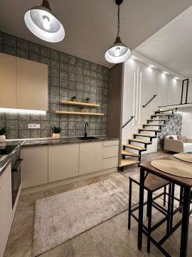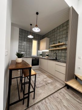 2. A kislakás teljes körűen gépesített és bútorozott!!! Konyhája új konyhabútorral, elektromos főzőlappal és sütővel, páraelszívóval és mikrohullámú sütővel felszerelt. A nappaliba dizájnos kanapé, étkező, a hálórészbe pedig franciaágy kerül. A lakásba hűtő-, fűtőklíma kerül és a hideg hónapokban norvég, elektronikus fűtőpanel gondoskodik az otthon melegéről. A teljes berendezés a vételár részét képezi!!!