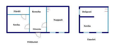 A földszinti részen, tágas nappali, hálószoba fürdőkapcsolattal, könyha és előszoba található.