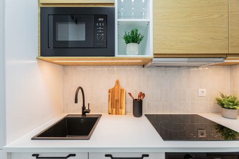 Az új, gépesített konyhabútor tartalmazza a beépített hűtőt, mosogatógépet, főzőlapot, sütőt, mikrót és elszívót.