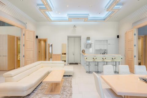 The property features an excellent layout: a spacious living room, 3 separate bedrooms, and 2 bathrooms, providing comfortable living space both for families and for those seeking a representative city residence. During the renovation, the elegance of the classical style was preserved, while the technical infrastructure was fully modernized approximately 10 years ago to meet todays standards.