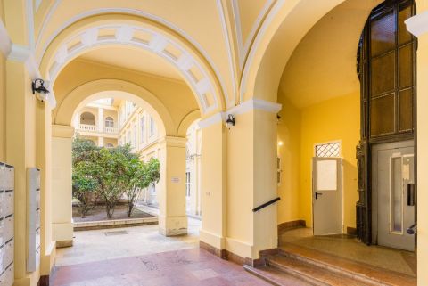 The apartment is located in an impressive, three-story, historic building under monument protection, designed by József Hild, which itself guarantees timeless value and a unique atmosphere.