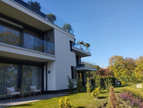 Csendes, nyugodt környék, zöld környezetben, tiszta levegő! Ez jellemző kívülről. És közelebbről? Saját kertrész (közel 300 nm), ami igényesen gondozva van, hatalmas, 24 nm-es terasz. A lakásban exkluzív, minőségi burkolatok és szaniterek. Újszerű, modern berendezés. Elsőosztályú konyhagépek. Kiemelkedően világos nappali, ami egy nagy tolóajtóval összenyitható a terasszal, ezáltal egy rendkívül tágas életteret biztosítva a lakás tulajdonosainak. 2 egymástól jól elszeparált, különnyíló, napfényes hálószoba és egy szép, zuhanyzós fürdőszoba található még az ingatlanban.