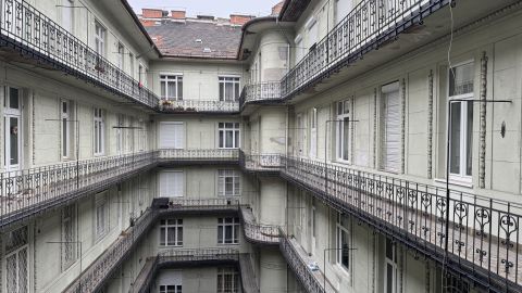 A társasház rendezett, a lakás ablakai csendes udvarra néznek, így a belvárosi elhelyezkedés ellenére nyugodt életteret biztosít.