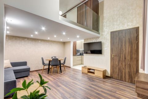 1. lakás: 26 m² alapterület + 9 m² állógaléria (hasznos tér: 35 m²)