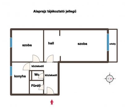 A ház panelprogramban részt vett. A lakás helyiségei: 2 szoba + hall, konyha, fürdő, wc, közlekedő.